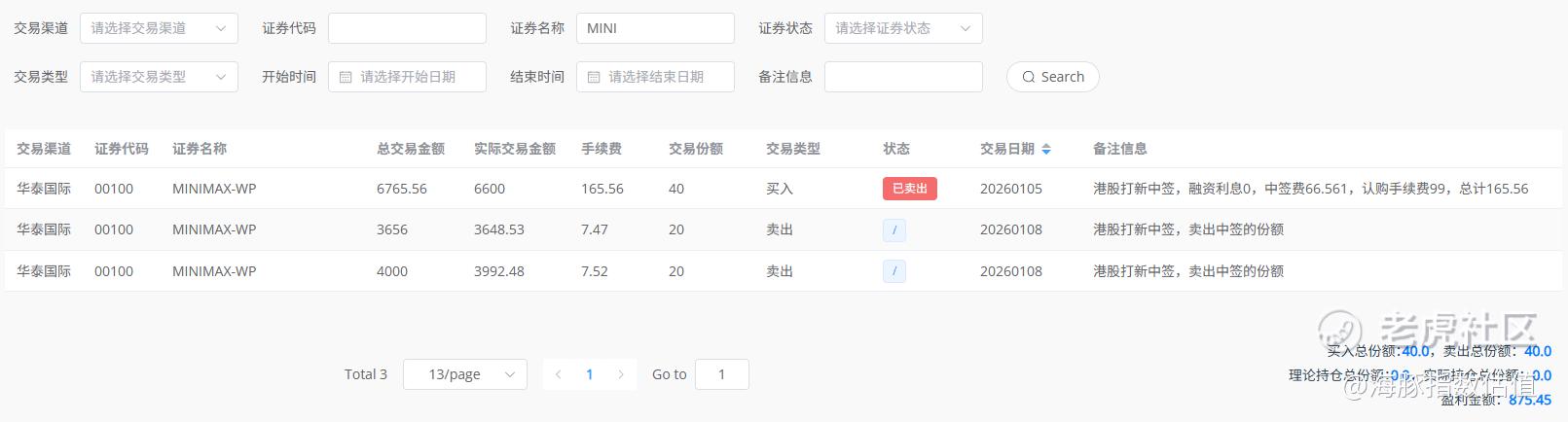 回看了一下,今年年初打新,还中了2手MINIMAX,喝了口汤就跑了。不过没啥后悔的,按既定的规则来,暗盘跑或者首日跑,不会出大错。