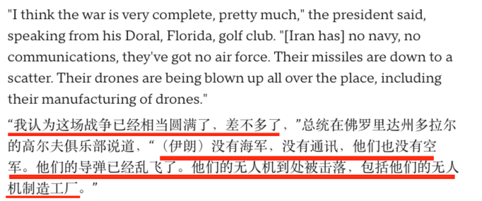 当他说“very complete”时,市场的解读是:核心军事任务已经基本实现,后续大规模军事行动的概率下降。