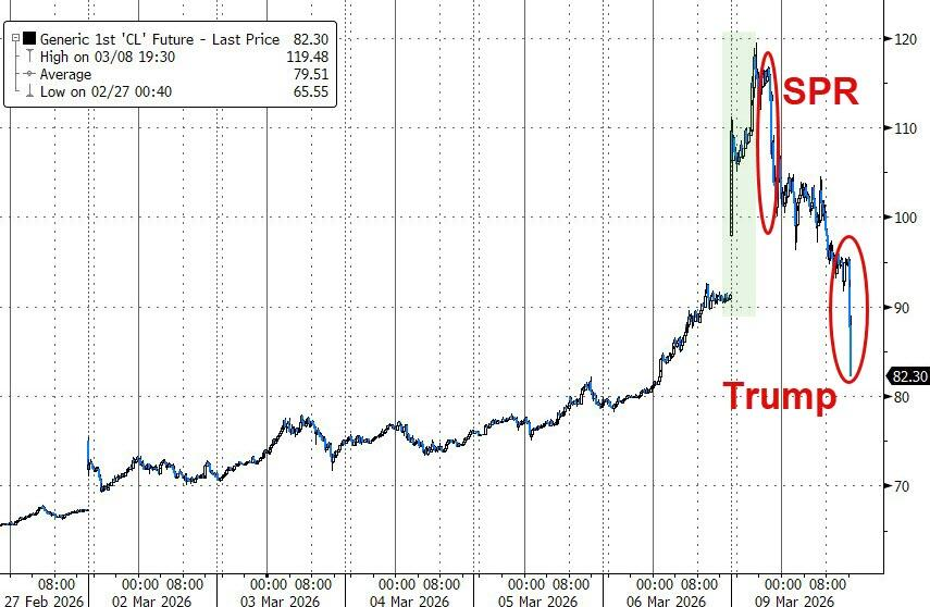 布伦特原油从接近120美元快速回落,下午收于98.96美元附近,随后进一步跌破90美元。WTI原油则从盘中119.48美元高位回落,最终结算在94.77美元,盘后甚至一度跌向85美元附近。