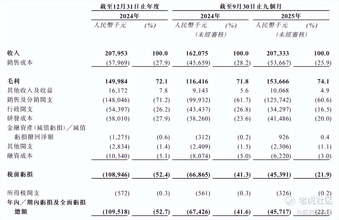 市场推广的投入与回报,也侧面印证了这一点。为了推广桑博恩®,五和博澳砸下重金:2024年销售及分销开支达1.48亿元,2025年前三季度更是达到1.26亿元,两年合计超2.7亿元。但高额营销换来的营收规模并不算太大,且盈利遥遥无期——2024年净亏损1.10亿元,2025年前三季度亏损收窄至4571.7万元,仍未摆脱亏损泥潭。