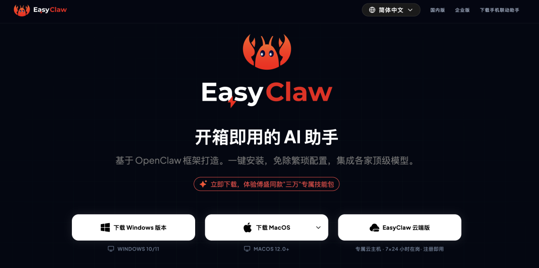 Step 1:登陆 https://easyclaw.com/zh-cn