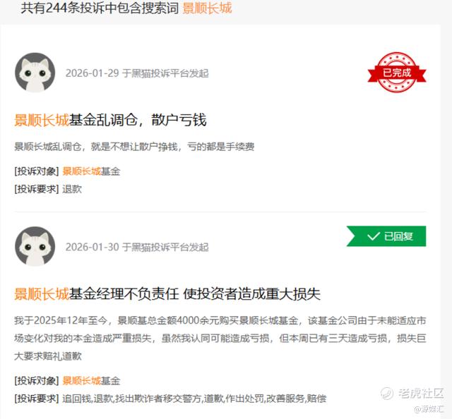 投资者的不满情绪也在积聚,有人甚至到黑猫投诉平台上投诉景顺长城基金经理“不负责任”致其亏钱。