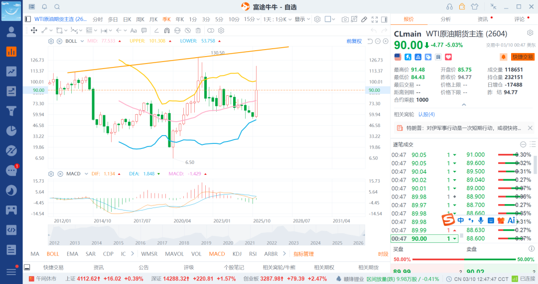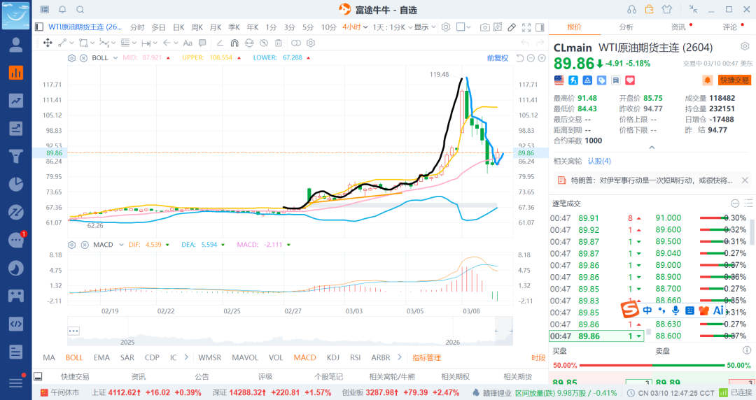 26-3-10 美原油超级大涨减2成剩余2成博140/150附近