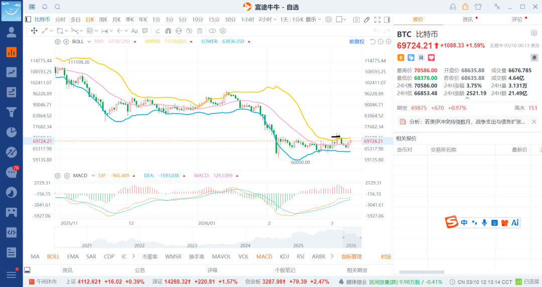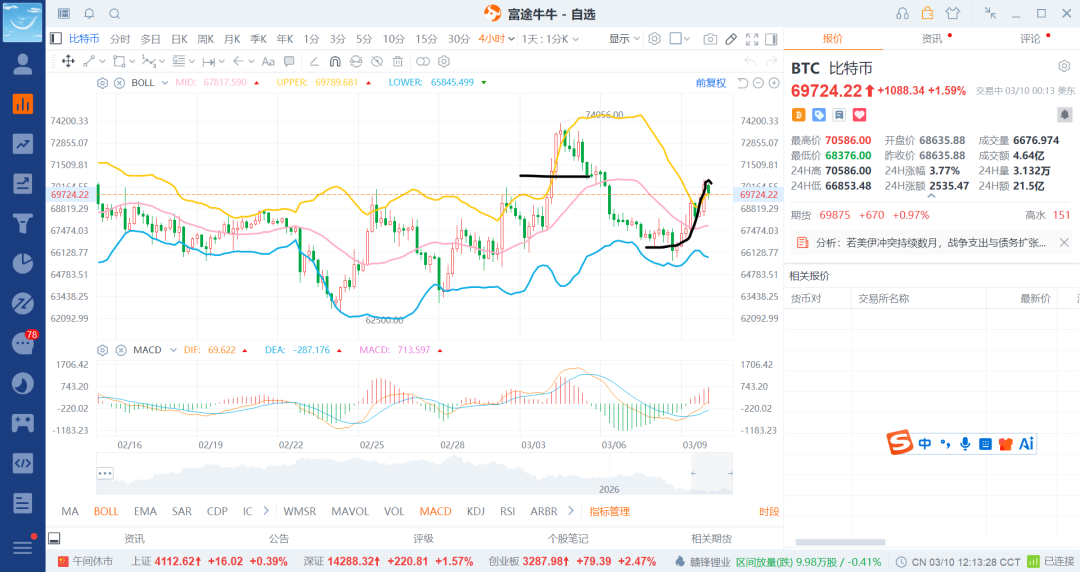 26-3-3 数字货币之比特币大反弹接近7w就t掉一笔(3)