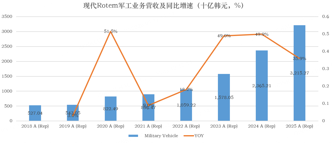 $PLUS Korea Defense Industry Index ETF(KDEF)$ 第二大重仓股现代Rotem公司是一家轨道交通 + 军工 + 工业装备公司,其中,军工业务主要坦克、装甲车等军用车辆,2025年,军工业务营收32153亿韩元,占总收入的比重高达55%!