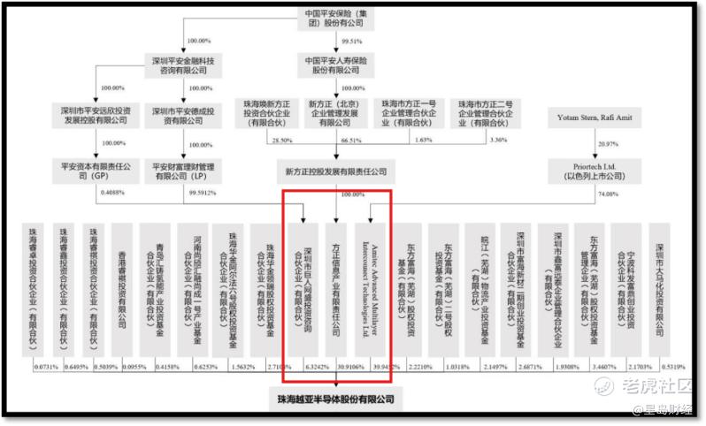 AMITEC隶属于以色列半导体公司Priortech,新信产背后则为中国平安。中国平安因2021年介入北大方正集团破产重组,接手了越亚半导体股权。