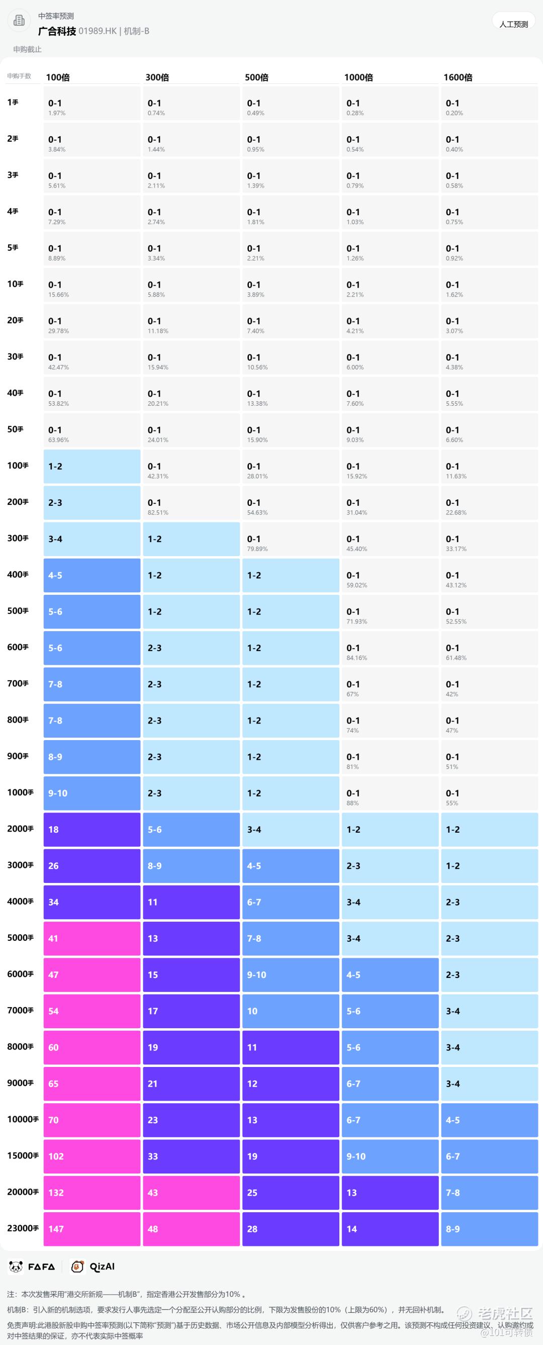 广合科技采用机制B,回拨10%;全球发售4600万股,香港发售460万股,一手是100股,共计46000手;甲尾申购需要44万本金,乙头申购需要51万本金;现在倍数是15倍了,预计最终会在500倍左右;由中信和汇丰香港保荐,有基石,无绿鞋,中信历史保荐项目还可以,汇丰香港相对比较一般。