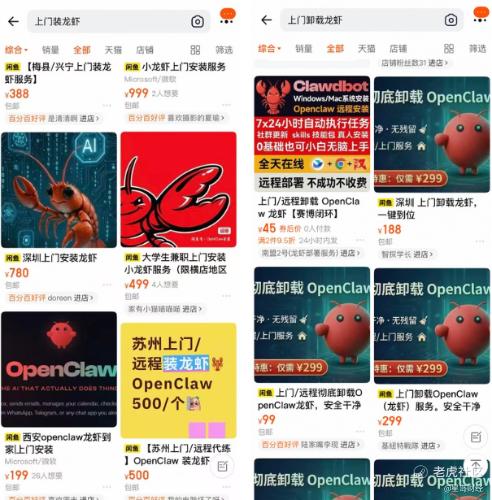 新兴工具引爆关注的同时,往往伴随商业机会的出现。由于OpenClaw安装部署存在一定技术门槛,且存在隐私泄露风险,部分线上交易平台开始涌现“龙虾上门安装”服务,费用从500元至上千元不等。