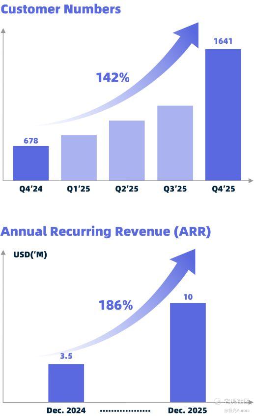 这一里程碑式的突破,是极光长期深耕SaaS领域、坚持产品创新与全球化战略的必然结果。第四季度收入同比增长13%,环比增长16%。全年来看,2025全年总收入达3.75亿元。