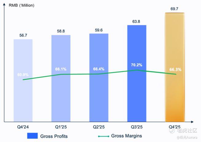 从盈利能力来看,2025年公司全年净利润成功转正,第四季度净利润达304万元,尤其相较于2024年的净亏损680万元人民币,实现了质的飞跃。这一转变的背后,是公司毛利润创下过去16个季度新高、毛利率同比大幅增长540个基点的优异表现,以及运营费用得到有效控制的结果。这表明公司的增长是高质量、高效益的增长,是建立在稳固的盈利地基之上的。