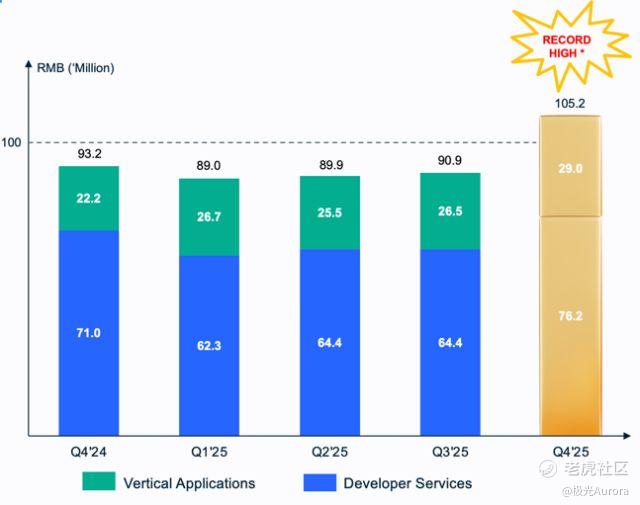 | 截至2025年12月31日的12个月内,极光核心的开发者订阅服务的收入留存率(NDR)达到103%。”