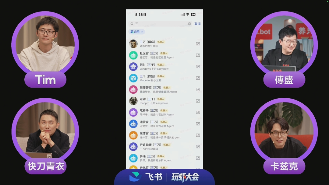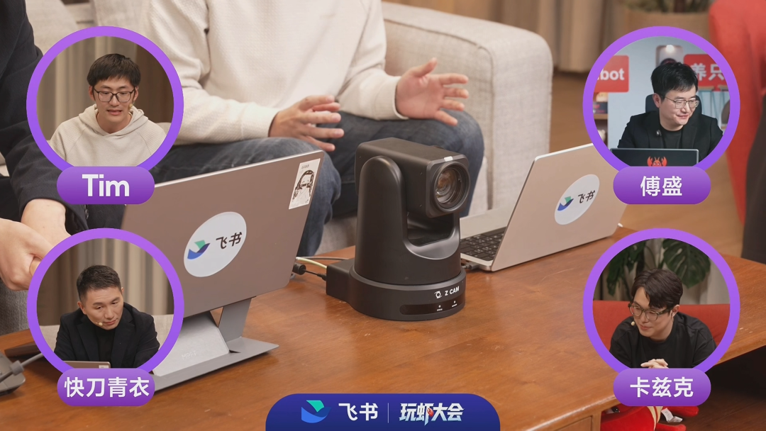 四个人——影视飓风Tim、得到联合创始人快刀青衣、主持人数字生命卡兹克、还有我——Tim带了一台摄影云台,刀哥带了11个agent,我带了两条拐。主题叫"AI时代的组织",听起来挺正经的。但聊着聊着就没人装了。