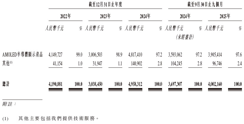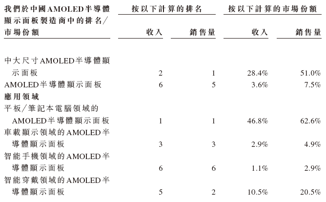 和辉光电的收入主要来自销售AMOLED半导体显示产品,另外一小部分收入来自包括提供技术服务等其他业务板块。