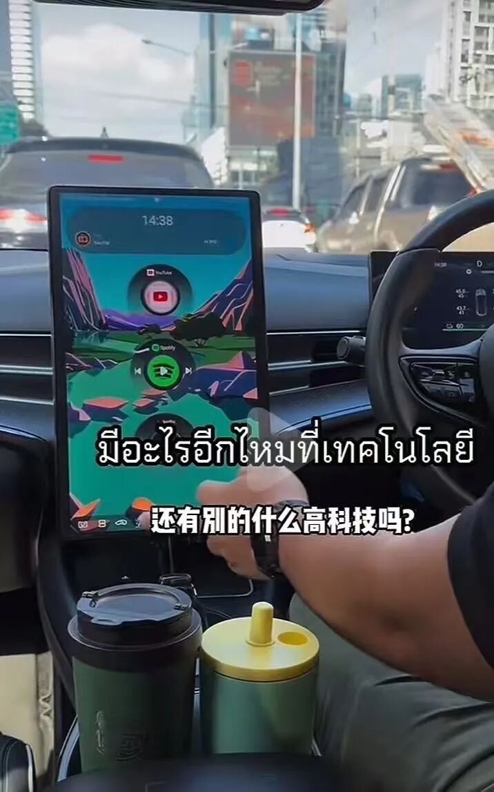 首当其冲的,便是曼谷令人绝望的堵车,而他的解决方案是中控台上那块可以旋转的大屏:“能连各种APP,还能看YouTube。”当旁边的日系车司机盯着前车尾灯发呆时,他可以用中控大屏刷短视频打发时间。