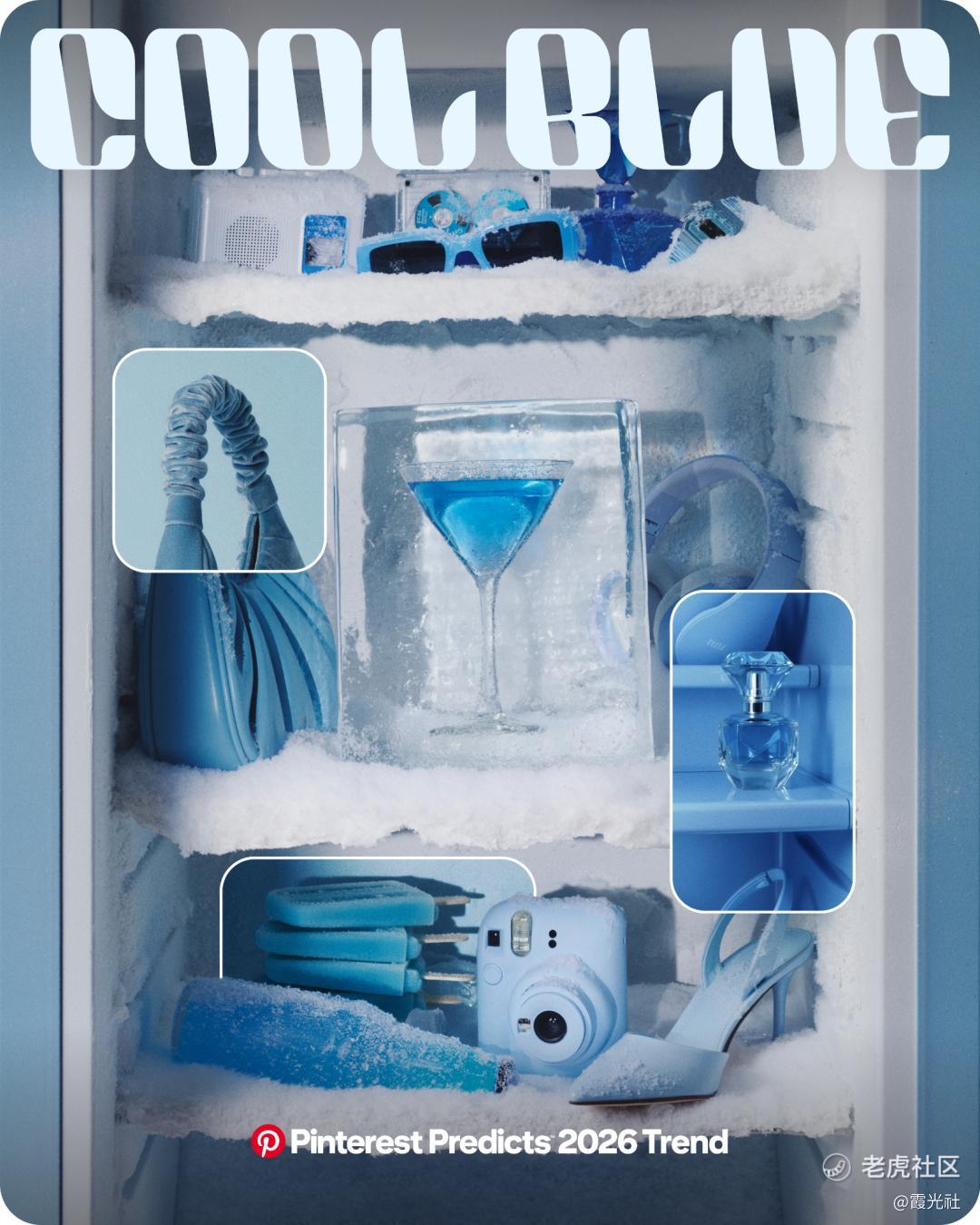 譬如,Pinterest Predicts 将 21 个趋势中的 Cool Blue (清冷蓝调)对应在食饮、时尚、美妆、庆祝活动等多个赛道,意味着这一元素可以应用在包装、产品、活动场景布置等多个维度,进而打造品牌 2026 年的对外印象。