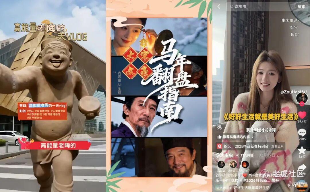AI创作节目《高能量老陶的一天vlog》用创意手法赋予文物灵魂,以抖音Vlog的模式做有趣的文化传播,平台整合内外部资源,联动多地博物馆与上宣媒体,提取亮点与创作者@Mae 联合呈现优质文化作品,相关内容在抖音以外的多个社交平台都有热门内容发酵传播,传播文化的同时也带动站内中小创作者出圈。