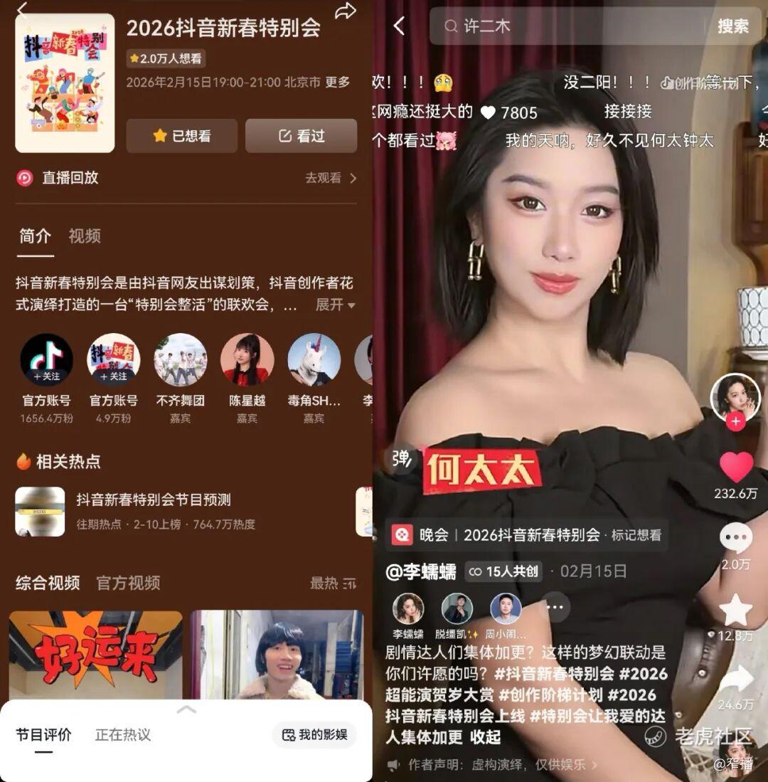 特别会结束至今,仍有不少网友重刷节目体验延迟满足,2026年的《抖音新春特别会》首播吸引近2000万人次观看,春节期间回放超过4000万,相关曝光超过80亿,而从节目中衍生的发财摇等玩法至今在抖音依旧火热,长尾效应显著。