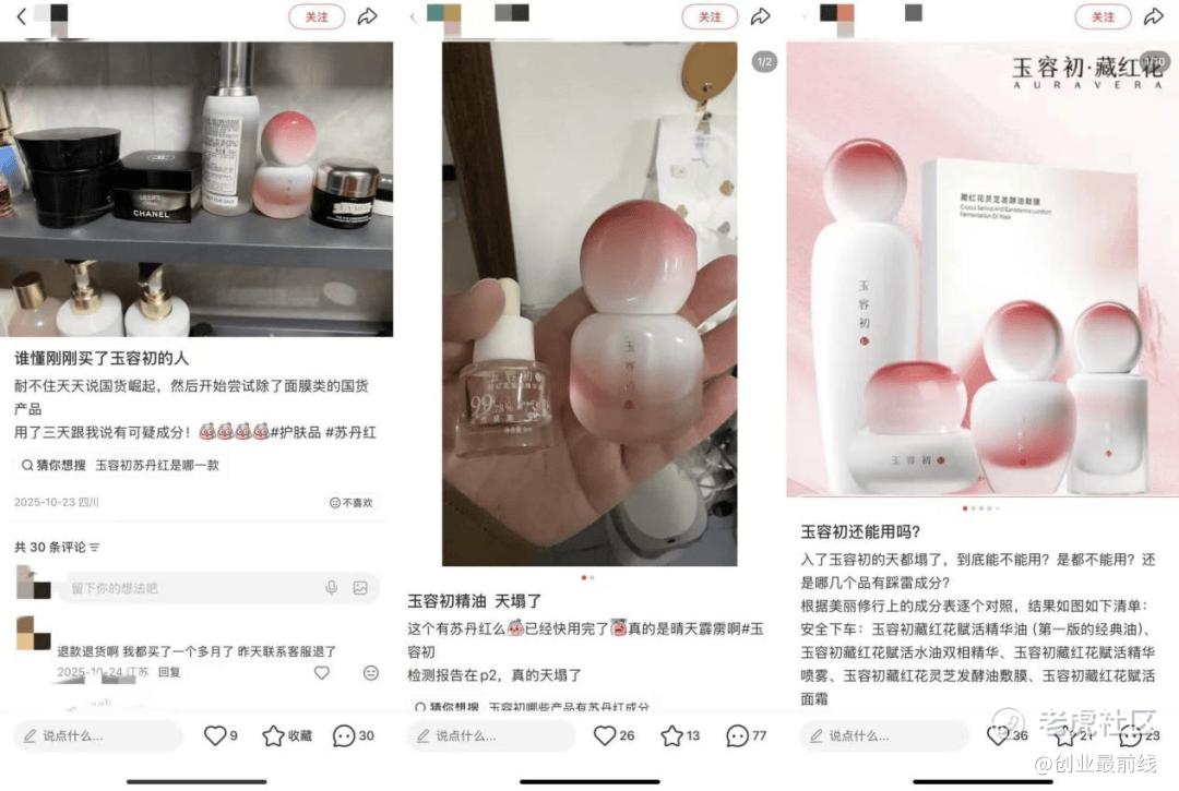 值得注意的是,2025年10月,测评账号“老爸评测”发布视频,称在多款化妆品中检出苏丹红,引发广泛关注。玉容初也卷入此次风波,品牌方称已关注相关信息,并第一时间将产品送检,随后会公布检测结果。