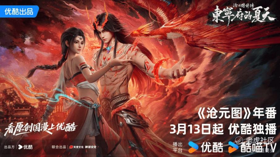 3月13日,优酷新国风动漫《沧元图》年番开播。该系列改编自作家我吃西红柿的同名小说,第一季豆瓣评分8.7,第二季成为优酷首部热度破9000和追更人数破500万的国漫。第三季优酷站内预约人数已突破700万,刷新了优酷国漫预约纪录,并将继续保持超过50集的年番体量更新。总制片人徐慧宇表示,第三季在前两季基础上,对孟川、柳七月等多位重要角色进行了全面翻新与精雕细琢,从面部表情到身体细节都进行了重新打磨,在场景、音乐、国风特效等方面也有进一步提升。