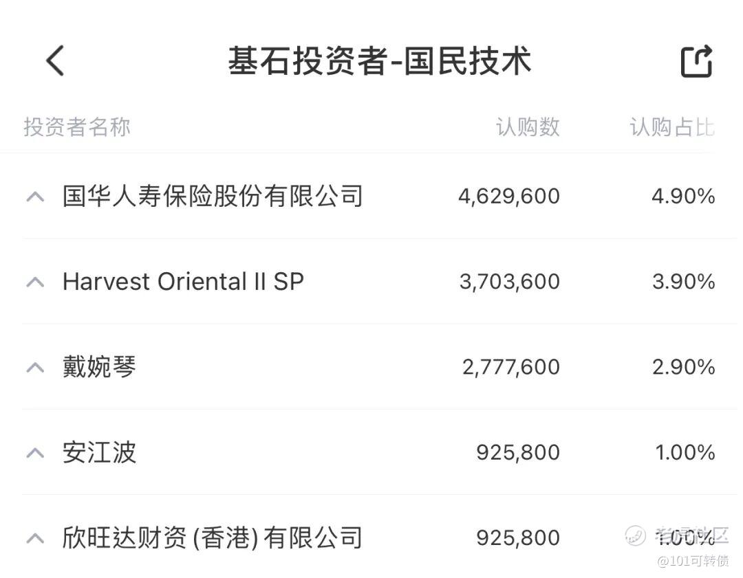 国民技术此次IPO引入了5家基石投资者,占比近13.7%。