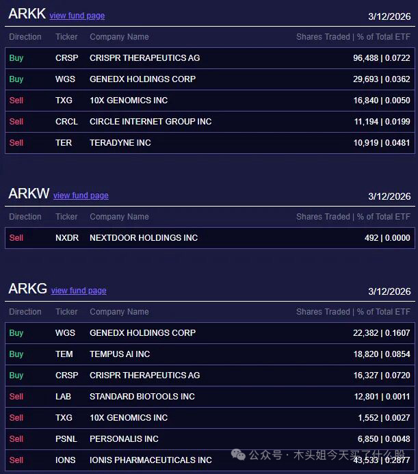 木头姐今天买入550万美元CRSP 卖出130万美元CRCL