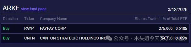 木头姐今天买入550万美元CRSP、400万美元WGS、94万美元TEM、500万美元PAYP、23万美元CNTN。