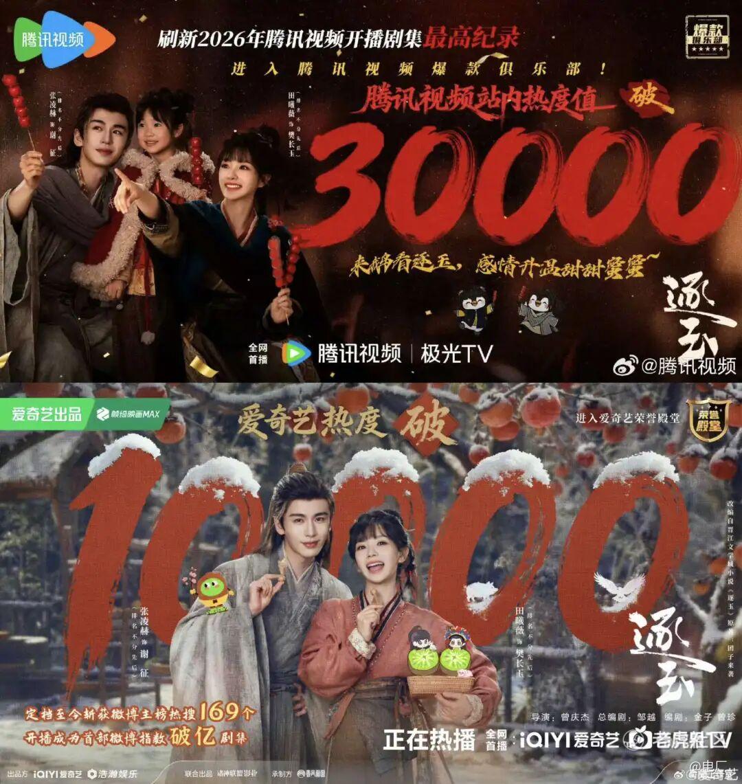 3月6日,由张凌赫、田曦薇主演的古装电视剧《逐玉》在腾讯视频和爱奇艺同步开播,平台公布的热度值一路走高。上线三天,该剧在腾讯视频站内热度即突破29000,刷新平台2026年剧集热度纪录;同期爱奇艺热度突破9500。截至发稿,《逐玉》腾讯视频站内热度已突破3万,爱奇艺热度已突破1万。