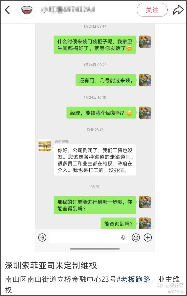 2025年12月下旬,索菲亚旗下高端橱柜品牌司米的深圳经销商安家天下(深圳)装饰有限公司(下称“安家天下”)被曝经营异常,社交平台集中出现消费者维权信息。消费者投诉称,安家天下的门店收取定制与整装款项后长期逾期交付,客户沟通群解散,员工欠薪,涉事金额或高达千万元。