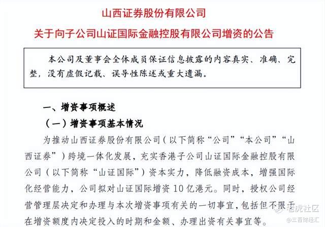 2025年11月,山西证券就曾宣布拟向旗下香港子公司山证国际增资10亿港元。
