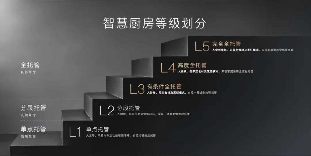 L0为基础功能传统厨电,L1-L2实现单点、分段智能托管,L3-L5可逐步实现“一餐饭全流程托管”。