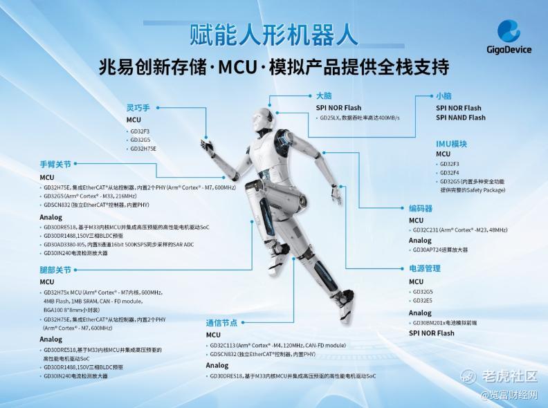 作为中国领先的平台型半导体设计企业, $兆易创新(03986)$ 凭借“存储+MCU+模拟”三大主营业务的深度协同与技术积累,聚焦“高性能+高可靠性”,全面布局GD32MCU、Flash、利基型DRAM和模拟产品,打造人形机器人核心控制系统一体化方案。其以国产芯力量助力人形机器人产业突破落地瓶颈,抢占万亿市场新机遇。抢占万亿市场新机遇。