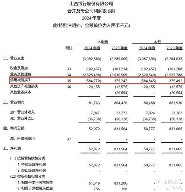 一是信用减值损失大幅增长,2024年末该指标达到5.85亿元,较2023年增长9.6亿元,减值计提是该行净利润收缩的原因之一。