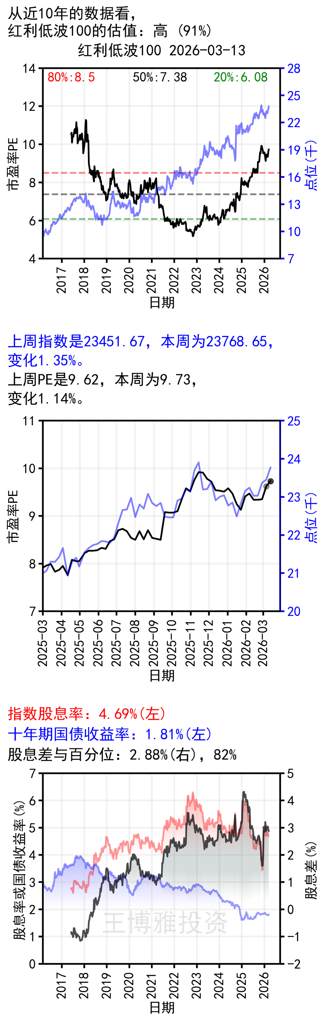 从市盈率角度来看,现在红利低波100估值高。