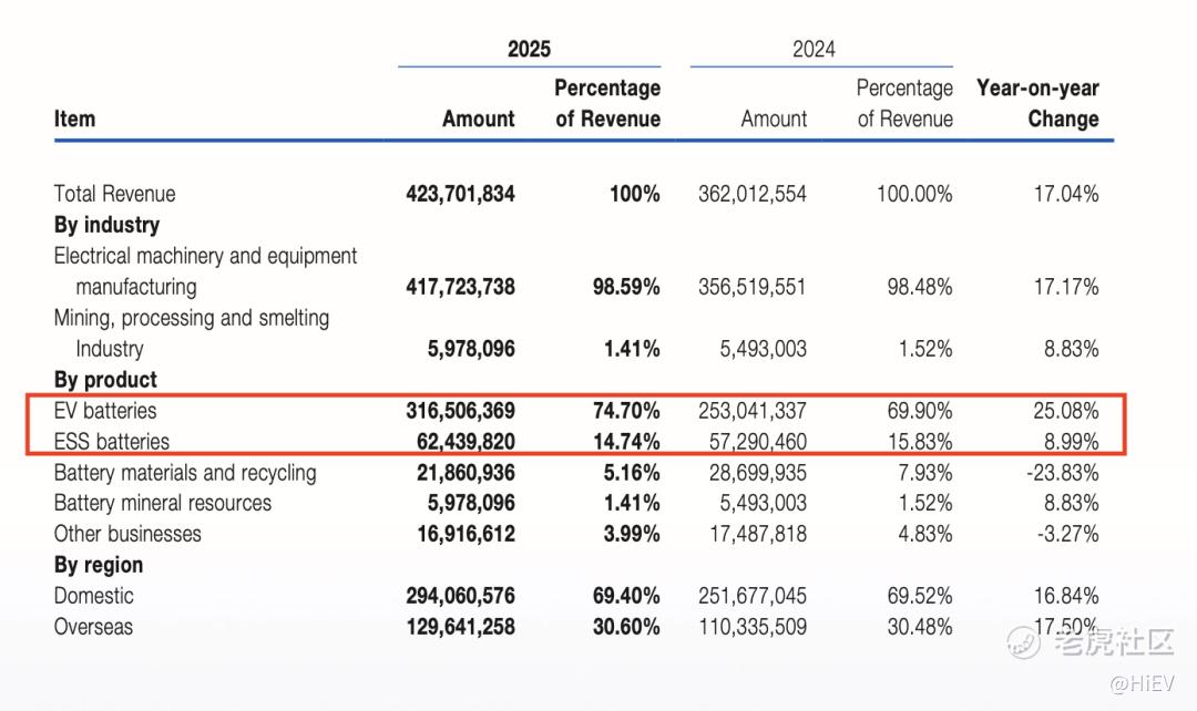 动力电池和储能,贡献近90%营收|来源:宁德时代2025年报