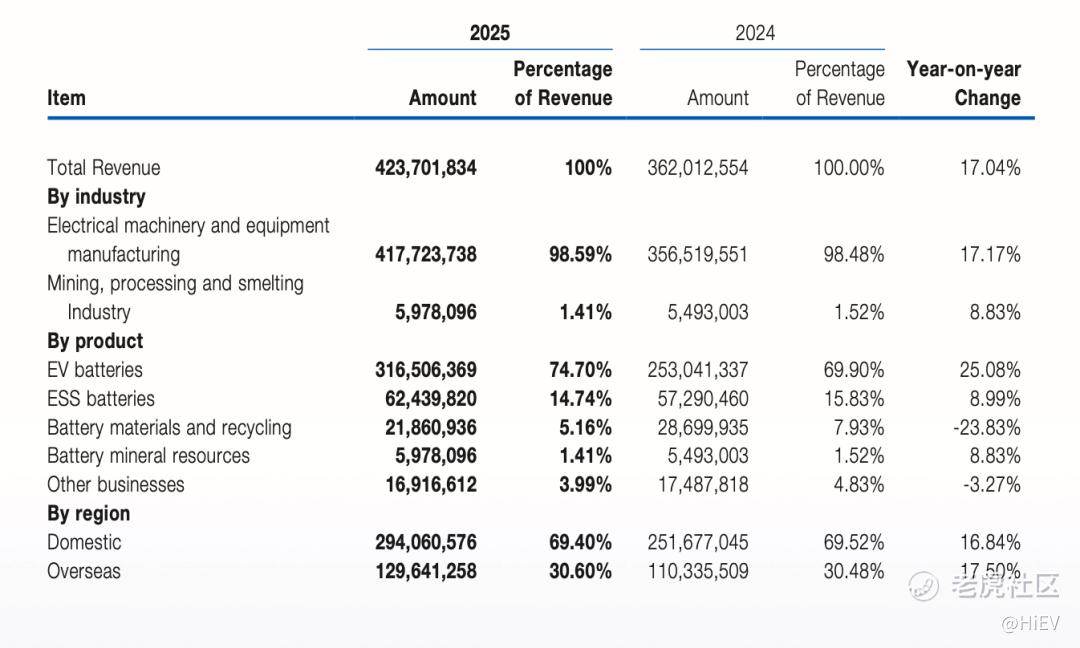 年营收4237亿元,同比增17.04 %|来源:宁德时代2025年报