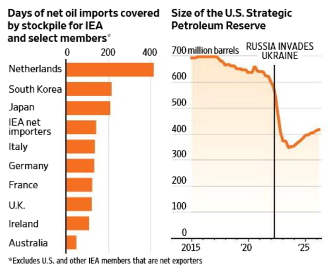 1、此次霍尔木兹海峡的封锁估计导致约1450万桶/日的原油及成品油出口中断,占全球消费量近五分之一。目前,IEA成员国共持有12亿桶政府储备及6亿桶商业强制库存,理论上可弥补约124天的供应中断。但是,动用储备面临多重挑战,包括储备原油品级与中东供应品类不匹配,且市场反应难以预测。1991年“沙漠风暴”行动时的储备释放曾成功压低油价,但2022年俄乌冲突后的储备释放,却因市场解读为危机加剧而一度推高油价约20%。