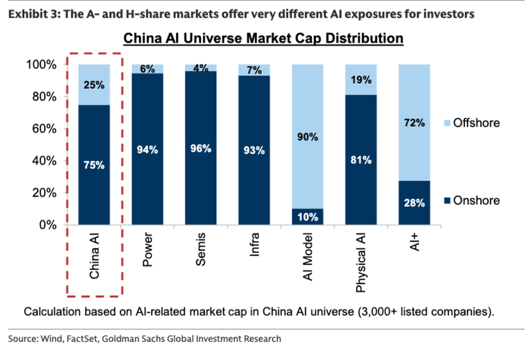 15、中国A股与H股市场为人工智能投资提供了高度互补的敞口。A股市场主导了AI基础设施层面,半导体、电力及基础设施领域有超过93%的市值在A股,具备物理形态的实体AI占比也达到81%。与之相对,H股市场则聚焦于应用端,AI模型与AI+领域的市值分别有90%和72%集中于此。这一结构分野使得A股和H股在AI主题投资中具备不同的价值定位。