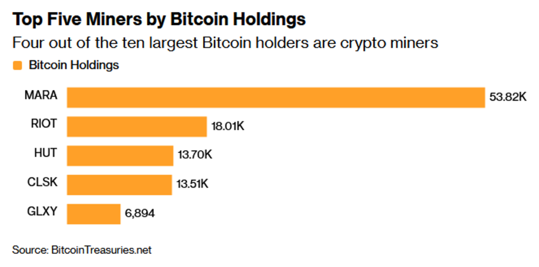 5、部分大型比特币矿企正在清算其长期持有的数字货币储备,以向人工智能(AI)数据中心的战略转型。这一转变的核心逻辑在于,将兆瓦级的电力资源用于AI计算,可获得比加密货币挖矿更稳定且利润更高的收入。作为持有53,820枚比特币的第二大矿企,MARA Holdings正考虑出售其价值近40亿美元的部分储备。同时,CleanSpark和Riot Platforms已调整高层管理以加速AI业务,而Bitdeer Technologies则已完全清算其比特币持仓。
