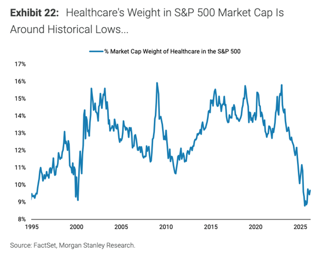 8、美股医疗保健行业的市值占标普500指数总市值的比重已降至接近历史最低点。同时,该板块相对于标普500指数的远期市盈率也处于历史数据分布的后20%分位区间。