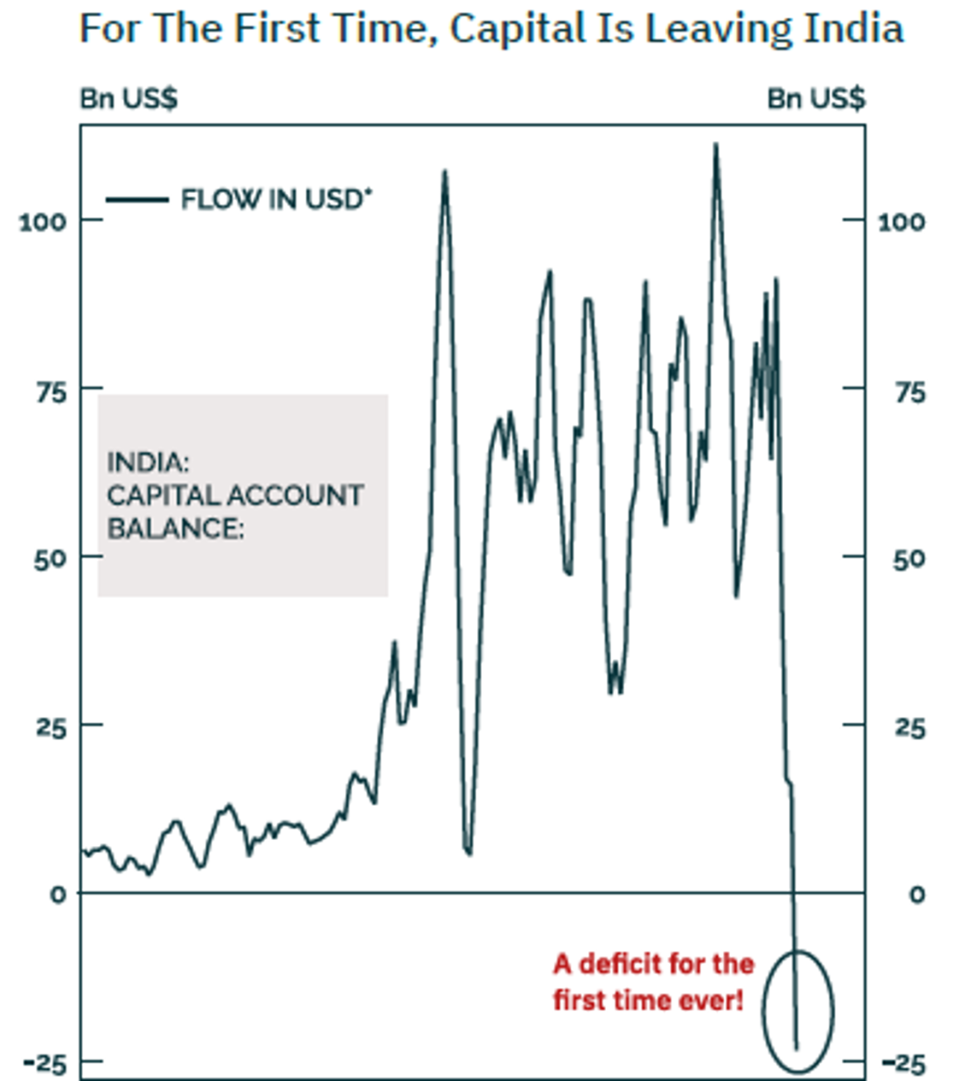 8、印度延续数十年的资本账户盈余状况已经逆转,该国已经连续第二年面临资本净流出。驱动资本外流的核心因素在于印度股市长期维持的极高估值。这种估值溢价导致当投资者需要降低新兴市场整体风险敞口时,印度资产便成为首选的获利了结目标。