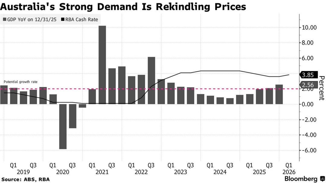10、因伊朗战争导致霍尔木兹海峡封锁,全球能源供应中断对澳大利亚经济产生了双重影响。一方面,作为能源出口国,澳大利亚受益于液化天然气(LNG)与煤炭价格上涨,其LNG出口收入预计将比政府预测高出35-40%,煤炭出口也可增加50亿澳元收入,从而改善国家财政状况。另一方面,国内家庭则受到汽油成本飙升的冲击,预计仅燃油价格上涨就将推动3月份的整体CPI上升0.9个百分点,其紧缩效应等同于一次25个基点的加息。