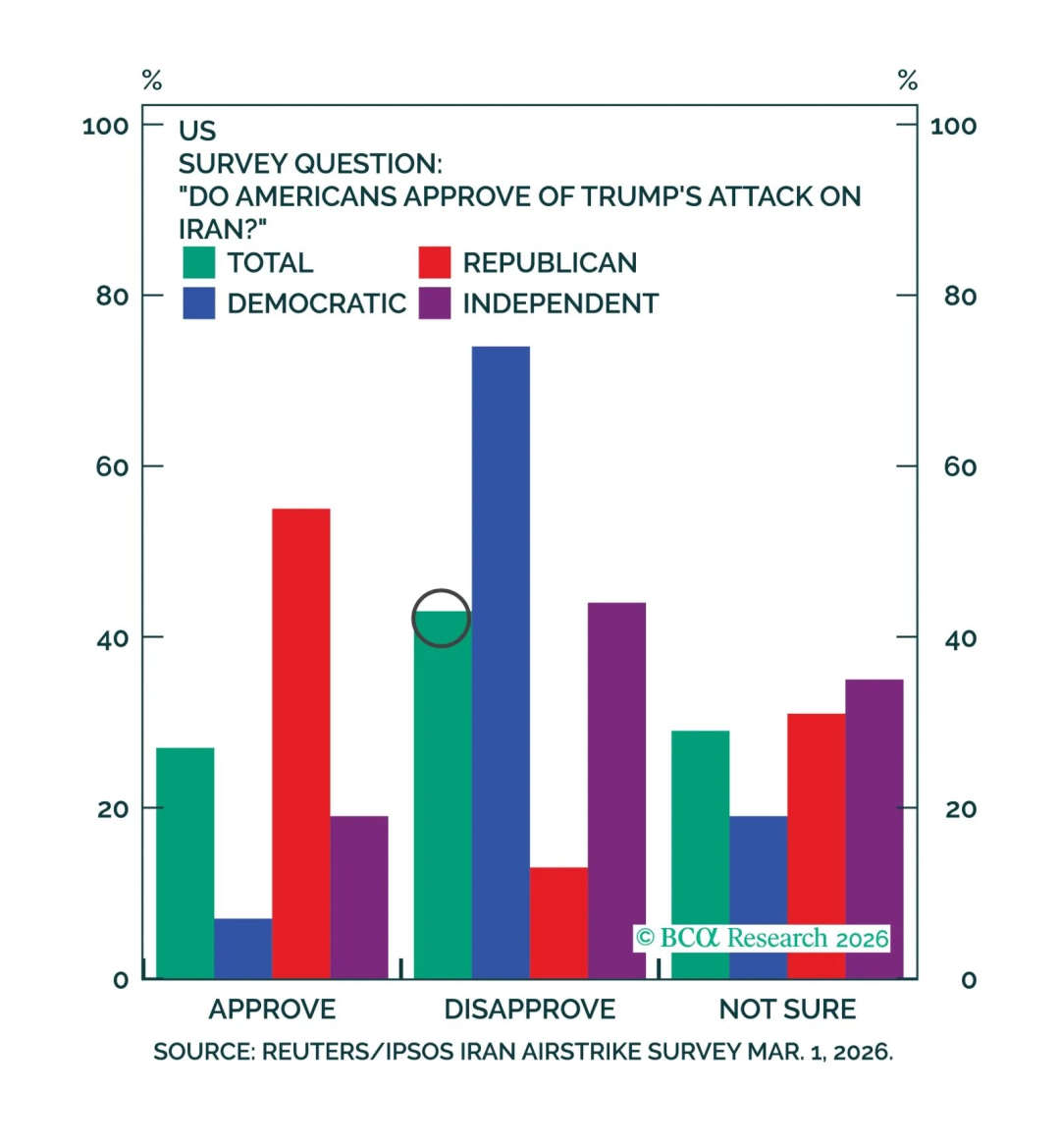 评论:说个不同观点,市场共识是美国民众肯定反战;但考虑到特朗普作为民选总统,且他在每次大选的民调都被主流媒体系统性低估,似乎仍然存在一种可能,就是并非大部分美国民众都在反战,当然这点留在中期选举验证。