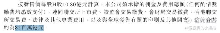 然后这个票招股书上按发售价10.80港元计算,公开的上市所有开支总额约为8200万港元,募资额约10.26亿港元,占比约7.99%,开支相比募资额算是比较少了。