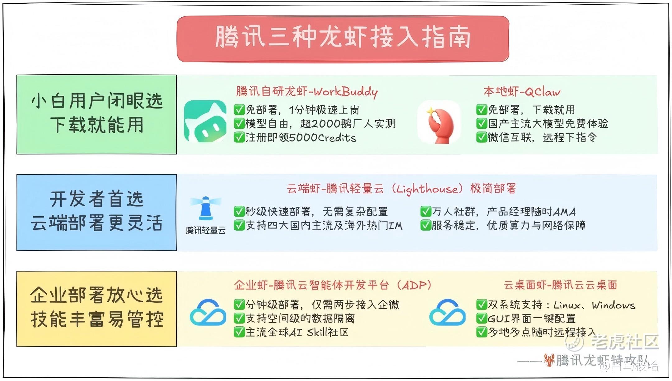 腾讯云Lighthouse支持QQ/企业微信双入口操控,一个QQ号能养5只小龙虾;智能体开发平台ADP几分钟就能完成部署,还能秒级接入企业微信;腾讯云桌面直接在云端Windows环境中操作,像用普通电脑一样配置。