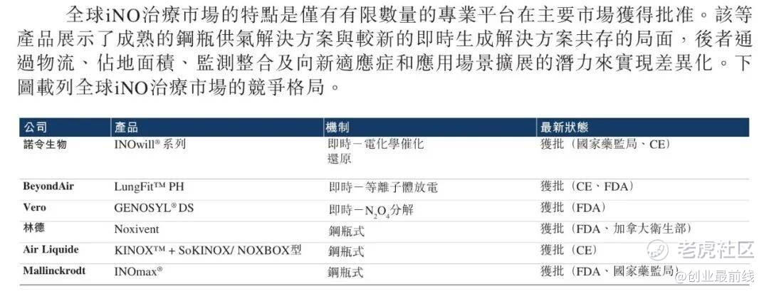 iNO疗法领域是诺令生物的核心优势板块,但这一优势正面临两大阵营的直接冲击,竞争态势日趋白热化。