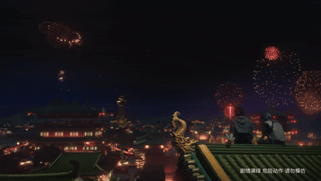 这也是一部很「和平精英」的剧。和平的玩家会惊喜于还原的场景:大漠风沙中敦煌绿洲缓缓浮现,男主(易泽)立于屋顶俯瞰整座古城,正是玩家喜欢的「以高打低」位;他的身后漫天伞花密集降落,游戏里最新上线的「丝路敦煌」地图,就这样以极高品质呈现在观众眼前。