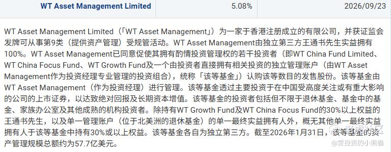 7. WT Asset Management Limited(认购占比5.08%)