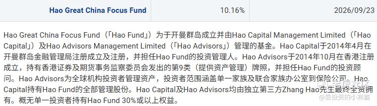4. Hao Great China Focus Fund(认购占比10.16%)