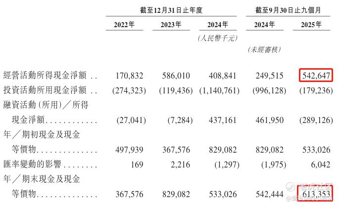 截至2025年9月30日,账上现金约人民币6.13亿元,经营现金流为5.43亿元。