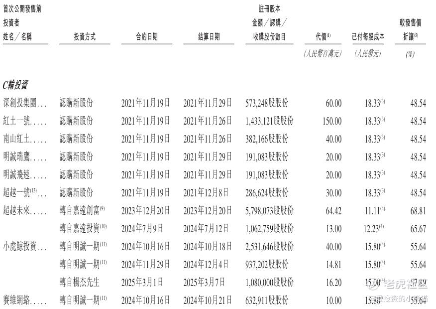 - C轮投资(2021.11-2025.03):深创投集团、红土一号等合计融资3200万元,每股成本18.33元,折价率48.54%;